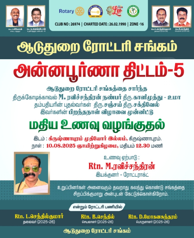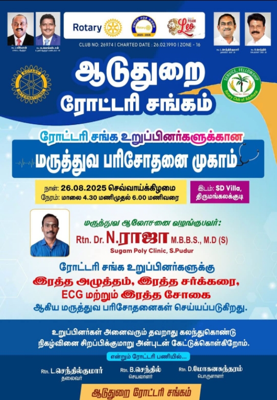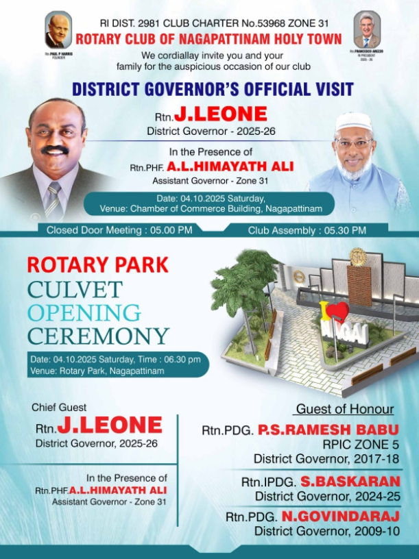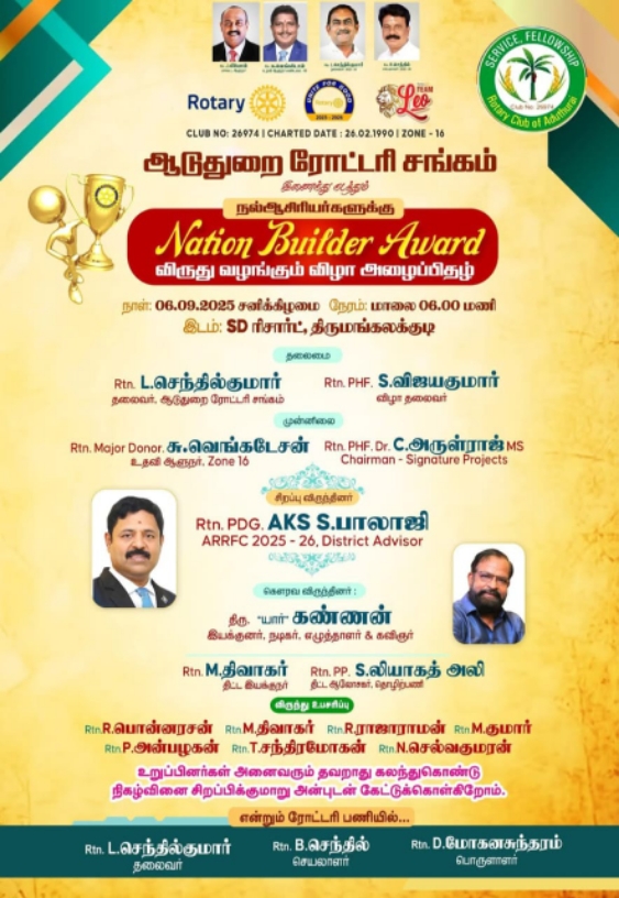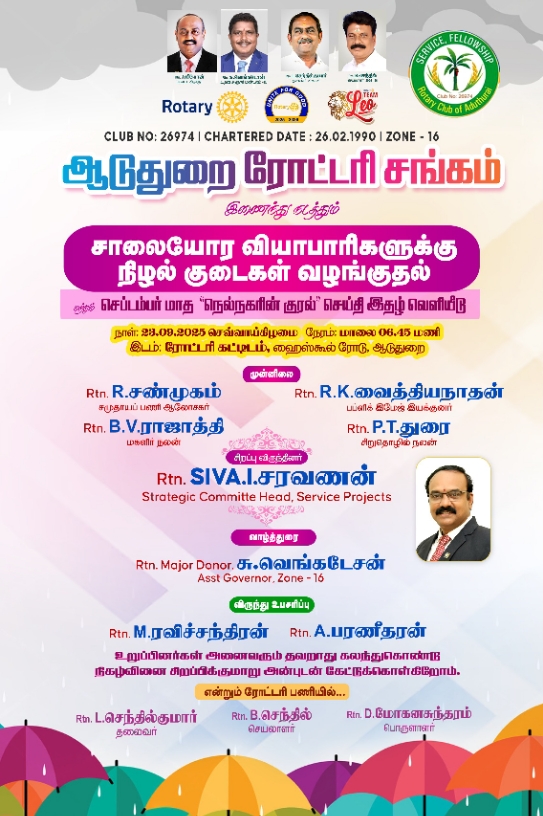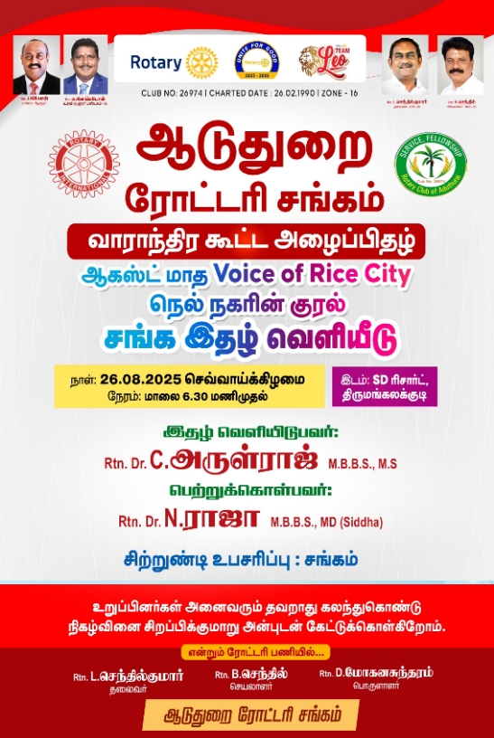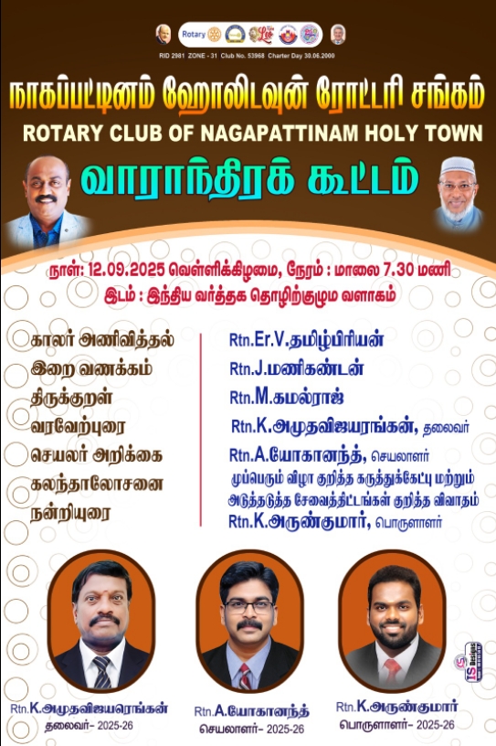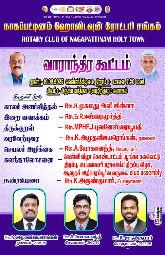 Weekly mweting to be hwld on19.08.2025 @ 7.30 p,m. at the Chamber Hall, Nagapattinam.